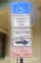 Blurry vision from keratoconus with shadows and ghosting.