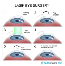 After the procedure, you need to wear transparent plastic eye-shields all day long for the first day, and then wear them during sleep for the first week. Try to keep your eyes closed as much as possible for the rest of the day. This will ensure adequate flap healing and maximum comfort. Use antibiotic drops and steroid eye drops 4 to 5" times, equally spaced for the rest of the day, depending on your doctor’s recommendation. Additionally, use lubrication eye drops every few hours and as needed.